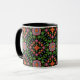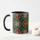 A pretty White Coffee Mug, with a Black lip and handlecolourful Floral Rangoli Pattern on a Black Background. Part of the Posh & Painterly 'Rangoli' collection, this pattern will fit any of the coffee mugs.