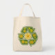 Promote recycling awareness and the environment with this cute organic tote bag that features a floral-themed recycle symbol surrounding a yellow daisy.