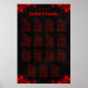 Floral Red & Black 15 Wedding Tables Seating Chart