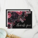 Dark Gothic Red and Black Floral Wedding Thank You Card — a romantic and moody design perfect for a gothic chic celebration. The front features a mix of black and red roses, grey foliage, deep burgundy branches, and pampas grass over an off-white background with a black border. “Thank you” is written in elegant script on the front. On the back, the couple’s names and wedding date are displayed in classic serif fonts. Great for fall, winter, or gothic-inspired weddings.
