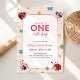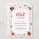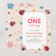 Floral Red Pink One Cute Bug Ladybug 1st Birthday Invitation