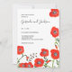 Floral red poppies modern wedding invitation