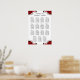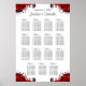 © Sunny Mars Designs - Floral Hibiscus: Red on White Wedding Seating Charts for 15 Tables - Stylish, modern, elegant, classy, chic, trendy customisable Gothic wedding table seating chart template with dark red, crimson, burgundy, ruby or maroon swirly tropical hibiscus floral design against a customisable white background. For fifteen tables.