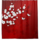 Floral Red White Cherry Blossom Oriental Shower Curtain