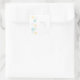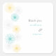 White thank you sticker with yellow and turquoise flowers and light grey reflections.