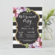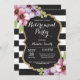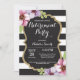 Floral Retirement Party Invitation Card. Women Retirement Party Invite. Watercolor Purple and Pink Floral Flowers. Gold Glitter. Black and White Stripes. For further customisation, please click the "Customise it" button and use our design tool to modify this template.