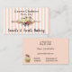 This sweet business card features a watercolor rolling pin adorned with red and white roses and greenery. Background is a blush pink with white stripes pattern. Personalise the front with your name, title and bakery name. Reverse side has a blush pink background, and a cupcake in the corner. Personalise it with your address, phone number, email address and website. Also included are lines for your Facebook and Instagram pages.