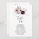 These floral romance table number seating chart cards are perfect for an elegant wedding. The modern rustic boho design features romantic watercolor flowers in soft tones of burgundy, mauve, blush pink and cream white with green leaves. The card prints on the front and back (double-sided).