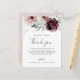 This floral romance thank you reception card is perfect for an elegant wedding. The modern rustic boho design features romantic watercolor flowers in soft tones of burgundy, mauve, blush pink and cream white with green leaves. Place these cards at the table setting for each of your guests at your wedding reception. Personalise the card with your names and a special thank you message.