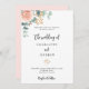 A chic white background. Decorated with a rose gold and blush pink floral, rose flower and green watercolored eucalyptus leaves, sprigs, greenery and a faux gold sprig. Personalise and add your names and details.