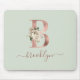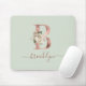 Floral Rose Gold Monogram Letter "B" Sage Green Mouse Mat