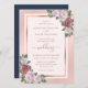 Floral Rose Gold Navy Blue Blush Wedding Invitation