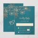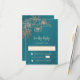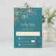 Rose gold floral line art cherry blossoms on a teal background. Matching wedding invitation available.