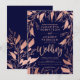 Floral rose gold typography navy blue chic wedding invitation