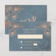 Rose gold floral line art cherry blossoms on a dusty blue background. Matching wedding invitation available.