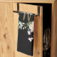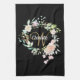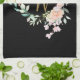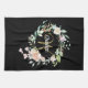 Pretty initial monogram kitchen towel, featuring a beautiful white script name with a complimenting gold initial that is framed by a delicate watercolor floral rose garland on a black background. Personalise to create a special keepsake gift to treasure! Designed by Thisisnotme©