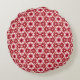 Floral round pillow in hues of red, light tan, and white. The reverse side is the same pattern but smaller...you decide which side you'd like to show :) ****Please note that due to differences in computer monitor and device settings, the colors on the actual physical product may not be an exact match to what you see on your screen.**** Thank you for looking! Peace, love, and light <3****