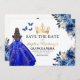 Floral Royal Blue Princess Birthday Quinceanera Save The Date