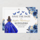 Floral Royal Blue Princess Birthday Quinceanera Save The Date