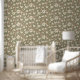 Floral Sage Green Beige Lily Botanical Pattern Wallpaper