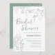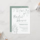 This bridal shower invitation is chraacterised by boho style, floral artwork, and sage green colours, with a mix of different font styles, often in different sizes, to create a unique, eclectic look that makes these invitations a natural aesthetic.