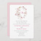 A pretty watercolor delicate wreath of pastel pink flowers with simple wispy greenery script and typography for the perfect elegant wedding invitation for your special day.