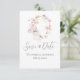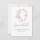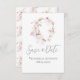 A pretty watercolor wreath of pastel pink delicate flowers with simple script and typography for the perfect Save the Date wedding announcement.