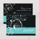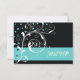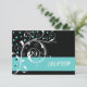 Floral scroll leaf black, aqua wedding RSVP Card