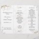 Gold scrollwork, leafy swirls, wedding program templates. Tri-fold ceremony program with grey and gold graphic floral design all over the background. **Reverse has no images or printing.