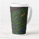 I painted my own uniquely original digital oil painting of a floral sea monster with its on camouflage capabilities blending in some aspects into the green background with its spotted green coloring and blue glittery spotty scales with the blue sea bubbles.