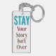 Floral Semicolon Stay Your Story Isn’t Over Yet Suicide Prevention Keychain. Semicolon on one side. Stay your story isn’t over yet on the other side. Buy for yourself or give as a gift.
