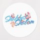 Blue handwritten Shabbat shalom greeting and hand drawn flowers