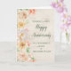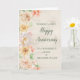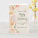 Happy wedding anniversary card for sister and brother in law with elegant pastel watercolor flowers and spring greenery and a rustic wood pattern.