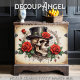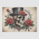 This elegant tissue paper design features a sophisticated skull adorned with a classic top hat and vibrant red roses, all set against a parchment-like background. Perfect for adding a touch of gothic charm to your Halloween crafts, this design captures a subtle blend of horror and beauty. Ideal for decoupage projects that need a hint of refined spookiness, this piece is perfect for skull lovers who appreciate a mix of elegance and eerie allure