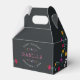 Wow your guests with this beautiful personalised favour boxes, perfect for Day of the Dead theme birthday parties, or for birthdays falling near Halloween or All Souls Day. Spooky soft black boxes feature vines of colourful flowers and tiny sugar skulls, with three lines of custom text for the occasion, date, and guest of honour's name. Designed to coordinate with our cute sugar skull Dia de los Muertos party collection.