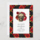 Crimson red, black and gold gothic wedding invitation featuring a skull decorated with red roses and a dramatic rose pattern. The photo on the reverse is optional. If you would rather remove it, scroll down to the bottom of "Personalise this template" and click on "Edit Using Design Tool". In the Design Tool you can edit, scale, delete or move any text or design elements you wish.
