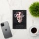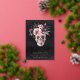 A spooky chic Halloween party invitation featuring a floral skull illustration topped with pink and purple watercolor flowers on a smoky black background. Personalise this unique and elegant Halloween party invitation with your event details in white lettering with gold foil accents. Wording shown for "Costumes & Cocktails" with an extra line of custom text at the bottom to share additional details.