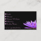 In the past I have had business cards - that were just okay - to promote my business I wanted something both eye catching and informative and Zazzle allowed me to create just that - my card grabs one's attention - while allowing space for lots of information - it distinguishes me from others in the field - the durable paper stock is another plus - and I loved being able to choose rounded corners to set my card apart from the masses - my personal service business focuses on providing balance and harmony in a peaceful setting and my card reflects that - and despite template confinement - I was able to create it myself - Zahoo. The colors and printing are vibrant and crisp - which is beautifully enhanced by the gloss finish