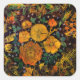 This vibrant image is a combination of a painting and digital art. It features glowing, golden-yellow and orange flowers with intricate, web-like textures. The flowers resemble roses and other blossoms, surrounded by a tangle of neon-like stems and leaves in shades of green, orange, and red. The background is dark, almost black, which enhances the luminous effect of the flowers and foliage. There are also tiny, twinkling star-like lights scattered throughout, adding a magical or cosmic feel.