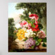 Still life with Hollyhocks, hibiscus, lilacs, yellow lilies and butterflies in a wood.