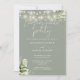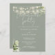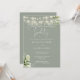 This elegant sage green floral string lights engagement party invitation can be personalised with your information in chic typography with your monogram initials on the reverse. Designed by Thisisnotme©