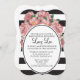 Beautiful Shower Invitation - Black & White Stripes under a classic oval design, adorned by budding flowers. Add the Bracket Edge for a special touch!