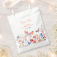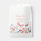Pretty baby shower small gift bag with colourful flowers in pink, purple and orange, butterflies and foliage. Perfect for a spring or summer bridal shower. The words can be changed to suit your own details or requirements.