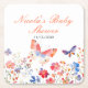 Floral Summer Butterfly Baby Shower Square Paper Coaster