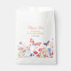 Pretty birthday small gift bag with colourful flowers in pink, purple and orange, butterflies and foliage. Perfect for a spring or summer bridal shower. The words can be changed to suit your own details or requirements.