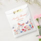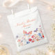 Pretty bridal shower favour bag with colourful flowers in pink, purple and orange, butterflies and foliage. Perfect for a spring or summer bridal shower. The words can be changed to suit your own details or requirements.