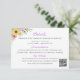 Share important information with guests using this versatile wedding details enclosure featuring a romantic watercolor floral design inspired by a spring garden party and blooming summer flowers. The artwork highlights sunflowers, daisies, and romantic wildflowers, paired with soft botanical leaves in purple, pink green tones for a fresh, welcoming look. Designed to be fully customizable, this floral enclosure can be used to share reception information, wedding accommodations, a wedding website, directions, schedules, or any other details you’d like guests to know. Perfect for couples who love boho chic botanical style with a touch of country charm, this sunflower daisy design coordinates beautifully with outdoor celebrations, garden weddings, and nature-inspired invitation suites.