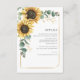 Floral watercolor sunflower and eucalyptus foliage wedding details card on white background. Easily customise for your wedding by clicking the "Personalise" button. Other wedding supplies, announcements, day of ceremony card and accessories available in the store