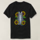 I give wanted to give this a 4 instead of a 5 because these Basic DARK T0shirts run unexpectedly SLIM or Narrow. Which is great if you do not have a potbelly, but I have a paunch. It isn't the shirt's fault that I've got a beer belly. The design and shirt itself is a quality cotton shirt. The color is more of a deep purple, but still a very pretty color. The Basic DARK T-shirts run a bit SLIMMER than the Basic Ts. The neck is a fraction narrower (or seems to be narrower) also. I'm a paunchy middle-aged woman and my neck is 12 inches (31cm) thick and the neckline fell about the same as in the photo of the man, and I had the desire to tug it a bit. So if you're a thick necked man or like loose shirts, be aware these are slimmer shirts. Once I get rid of my lockdown paunch it'll look great. The shirt washed well in cold water with no apparent bleeding. We don't have a dryer, so it hung dry. Did not shrink. Love the colors and the design. The design looks smaller on my shirt than it does on the model on-line. But still, it looks good on the shirt. The printing looks as it does on the model, just the size seems fractionally smaller. Washed garment in cold water, hung dry and design appeared unaffected.