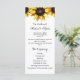 Sunflower Wedding Program Card with Yellow Watercolor Sunflowers on a White background. Use personalise this template option to change the text | Use customise further option to change the text style and colour if required.